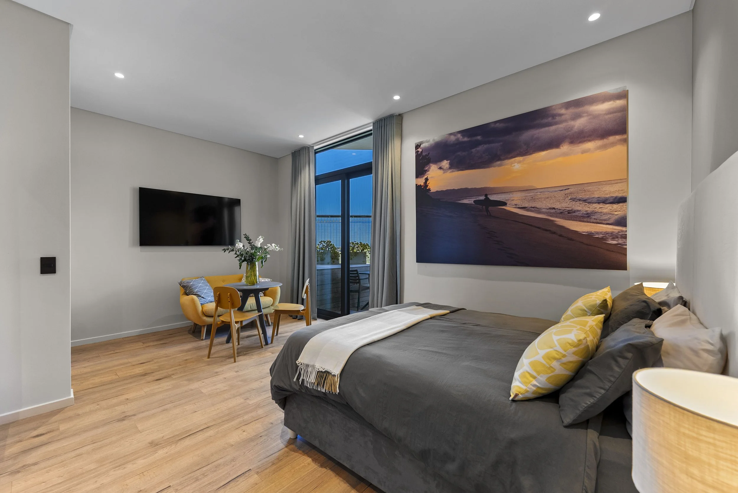 The studio is equipped with a king-size bed and an en-suite bathroom. A spacious kitchenette has also been installed. The terrace opens to the ocean and to the backyard and has a wooden deck.